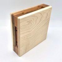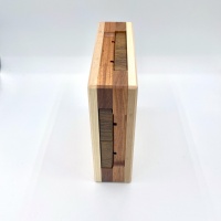 Here is another representation of Framed Burr. It features pins and complex shaped grooves on the pieces and there are also grooves on the four sides of the frame to give an escaping exit to the pins. This is a level 149-15-2 burr puzzle meaning it requires 149 moves to remove the first piece from the frame, and another 15 and 2 moves for the second and third pieces.