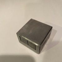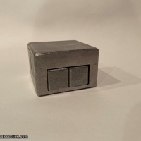 The Piston Box puzzle is also known as Internal Combustion or Pandora's Box. This is a hefty metal puzzle for its size, and is composed of 4 burr pieces and a frame. From previous listings, "it was invented by Tadao Muroi and designed by Marcel Gillen." Assemblies that require different numbers of steps are possible. A review describing this can be found here: http://smallpuzzlecollection.blogspot.com/2011/07/internal-combustion.html