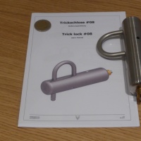 T8 reminds of a antique "P" lock. It has 2 Tricks and no key. I am pretty sure that many people will like especially Trick 2! It weights 700g. Manufactured from Stainless Steel and Brass.