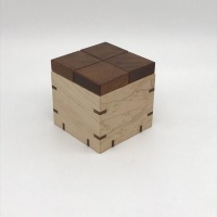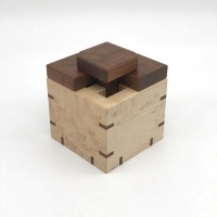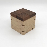 I've been thinking about making Pox Box for a while, and was waiting for a time when I could give it the attention it deserves in the workshop. Such a simple design belies how tricky it is to solve...with a level 7.14.7 solution, it's no pushover. I decided on a box with mitered and splined joinery all the way around, and veneered tops on the pieces. Painstaking and time consuming, it was all worth it...the result is gorgeous! This is one puzzle that really catches your eye and is as much fun to solve as the appearance promises.