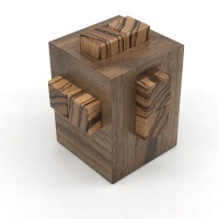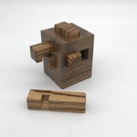 Prison Burr is for those crazy puzzlers who can't resist a challenge. With a level 2.15.16.8.3.2 solution, even taking the first piece out...you know, the 2 move piece...can be tricky! And it goes downhill from there (or uphill depending on your level of puzzle crazy). Stephane locked a difficult six piece burr assembly into a cage with no access to the bottom of the puzzle. Tons of fun to disassemble; I can't even imagine reassembly without directions.