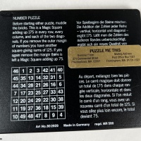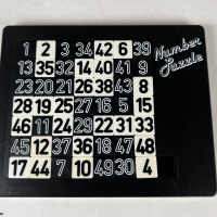 Classic sliding puzzle. Match the interesting number design as outlined on the reverse