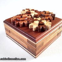 You will find the similarity of this puzzle to Ixia Box. Juno produced the gear part of the puzzle at the same time as Ixia Box and it became the six month project to complete the production of the puzzle. Many hours of CNC milling works were required for each individual puzzle. Once you see the construction of the puzzle, you would recognize how tough and time consuming it would be to produce such a puzzle.