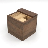 Construction of this puzzle is sublime, with enough room in the box that wood movement will not be an issue. The box features shouldered joinery and a free-floating bottom for longevity.