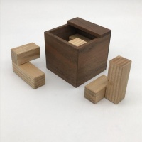 Peter sent me this remarkable design and I immediately knew I wanted to realize it. The five piece cube has some remarkable qualities. Each piece is different and none share symmetries. They contain 26 units in total, so a 3x3x3 can be made with one unit missing. The missing unit is solvable for each position, and each solution is unique. If that weren't enough, there is a box to pack them in which can only be serially assembled with the missing cube in one orientation. A very tricky and worthwhile assembly!