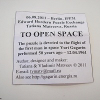 The puzzle is devoted to the flight of the first man in space Yuri Gagarin performed 50 years ago (April 12, 1961). This gave us the key TO OPEN SPACE.