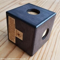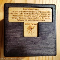 Box with a T-shaped hole through which to insert the soma cube pieces.  More than one solution using rotations but there is a unique assembly without.