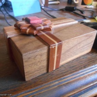 Ribbon Box II, or "Box with Ribbon II," or "Gift Box," I've seen it with all these names. Akio Kamei design. This one is labelled from Bits and Pieces as "Original Kamei Gift Box Reproduction, #07-6011". There's a tiny ding on the edge of one of the sliding pieces, very minor; see picture. Comes with original box and instructions.