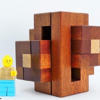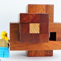 As written by Cubic Dissection: "The unique shape of the Rough Night Burr is what initially caught my eye. Combine that with a very elegant set of pieces (two sets of three identical), a unique level 4.5.2.3.3 solution, and some very very tricky moves and you come up with a winner. While this design isn't as new as many from this update, it was beginning to be made and I'm glad I did. The assembly has a lot of movement but no shortcuts or illegal moves. The final assembly is quite stable and displays very well." Only 35 made, signed, and dated.