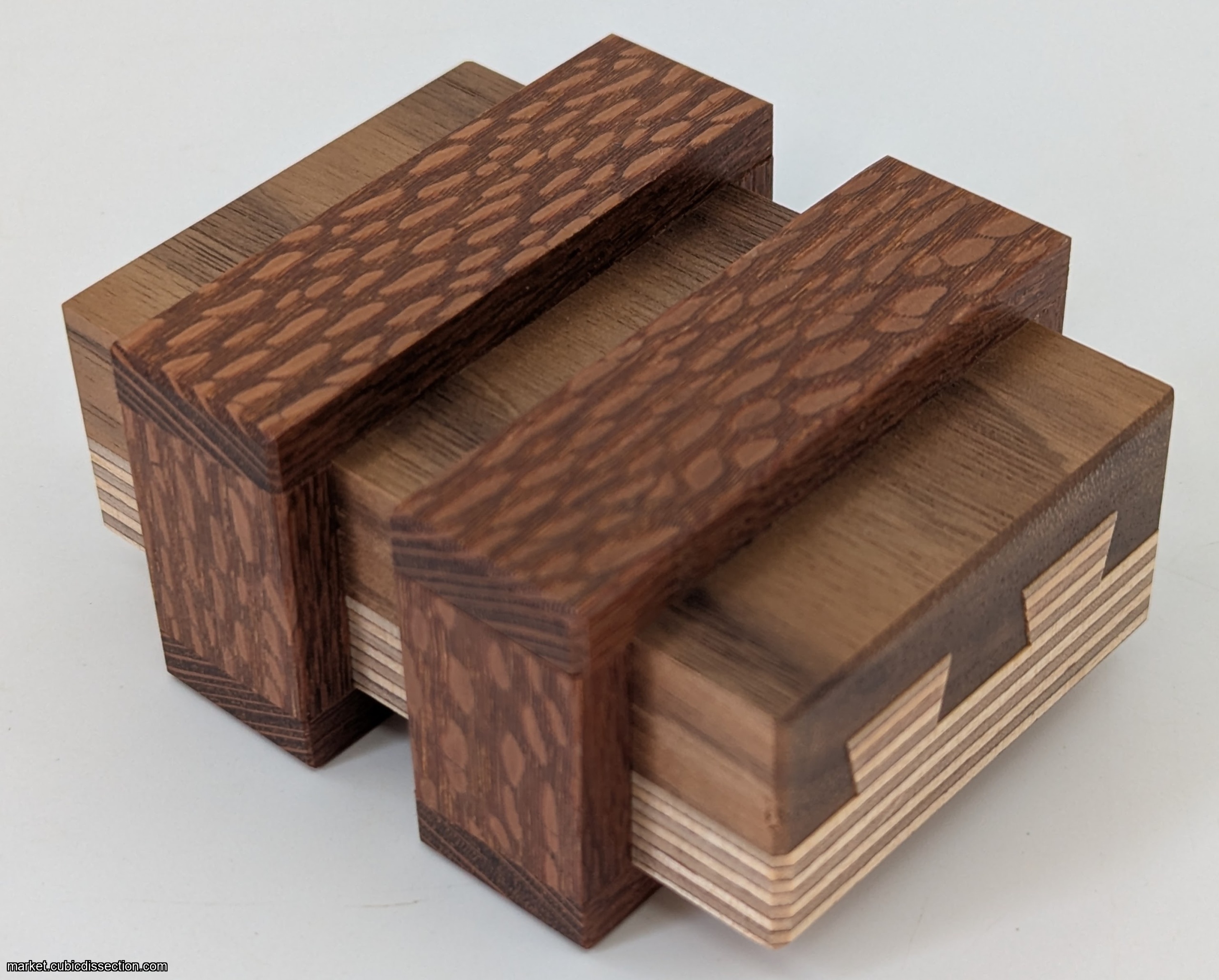 The puzzle is in excellent condition and functions well. There are some mildew/mold marks on the exterior of the canvas bag.