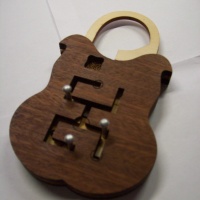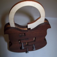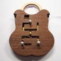 Manipulate the wooden tiles attached to the metal rods in order to open the lock.
