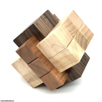 Secret Burr is a re-release of a puzzle I made very limited copies of in 2002. Unique in that it's difficult in both assembly and disassembly, there are two locks inside the burr that interact much like Cutler's Ball Bearing Burr. Instead of steel bearings, Secret Burr uses small wood rectangles. Precision crafted of fine hardwoods, this puzzle not only looks exotic, but has the trickiness to back up its appearance.