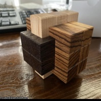 Secret Burr is a re-release of a puzzle I made very limited copies of in 2002. Unique in that it's difficult in both assembly and disassembly, there are two locks inside the burr that interact much like Cutler's Ball Bearing Burr. Instead of steel bearings, Secret Burr uses small wood rectangles. Precision crafted of fine hardwoods, this puzzle not only looks exotic, but has the trickiness to back up its appearance.