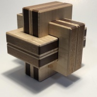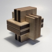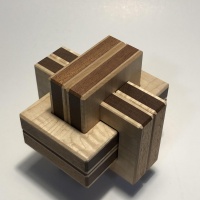 As you can easily imagine, the concept of the puzzle is the same as our former product, Sequential Discovery Burred Box. The puzzle looks like a 6 board burr and it actually behaves like ordinary burr puzzles. Once you start playing with the puzzle, you will soon be aware that the puzzle is quite extraordinary. Several tools are used to reach the goal of the puzzle. The required steps to reach the goal is more than 10 depending on how it is counted. If the puzzle is considered as normal burr puzzles, the level of the puzzle is nearly 20. The same as our former sequential discovery puzzles, if you observe the puzzle carefully, you will find hints to conquer the puzzle. The overall difficulty of the puzzle is almost the same as Sequential Discovery Burred Box and is easier than Slammed Car.