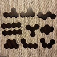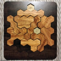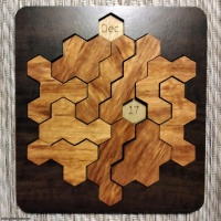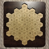 A calendar packing puzzle with ten hexagonal unit, two-sided pieces (dark and light sides).
