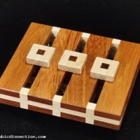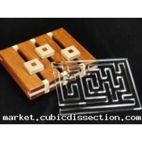 Eric’s description: Even though I knew it would be a difficult project, I couldn't resist making this puzzle. It's a very unique concept and execution. The acrylic maze piece must be removed, and the three key pieces are simultaneously manipulated to achieve the goal. Very tricky and very interesting looking, this puzzle begs to be solved.