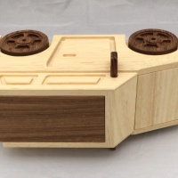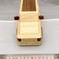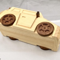 Like most of Juno’s former designed puzzle boxes, bashing, tapping and centrifugal forces are not necessary to open it. It can be solved by gentle operation. If you think that the puzzle doesn’t work as you expect, please consider the possibility that you might have missed or overlooked a trick(s) of the puzzle. Please be careful when you park the car on a shelf, securing the car so that it does not run off the cliff. It is a good idea to have a sort of wheel lock, or place the car on a piece of cloth. Playing the puzzle on a wide spread blanket or a large towel is also recommended because it makes the handling (operation) easier and these cloths give a good grip for the wheels.
