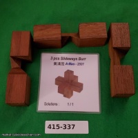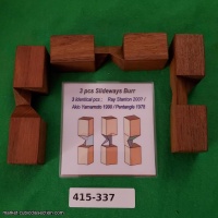 Akio Yamamoto version of the infamous como Slideways Burr 3 piece design.  A gem of a puzzle, pieces are made of wood, precision cut and rounded.  3 pieces, each 80 × 20 × 20 mm. 1 solution.