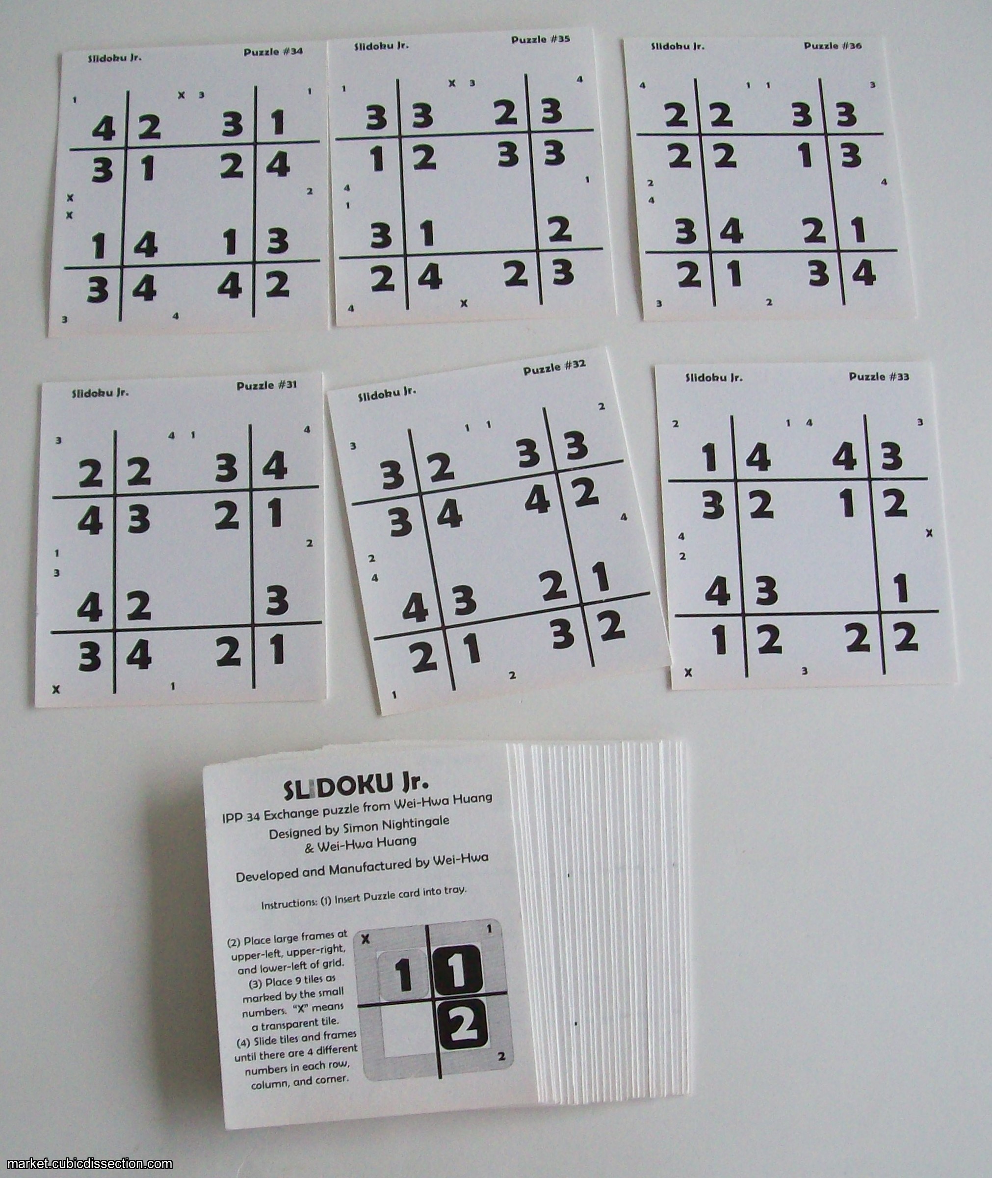 Solve multiple mini-Sudoku challenges by sliding trays and numbers from given starting Positions.