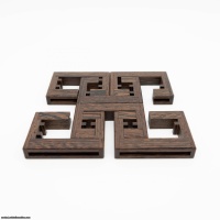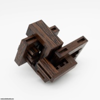 Another brilliant design by Mr. Eyckmans, "Sloot" means "ditch" in Dutch, a reference to the slots on the sides of this unique puzzle. Taking the six piece board burr to another level, Sloot features a very difficult level 16.6.4 unique solution. The interplay created with asymmetrical stick dimensions, the inner tabs and the outer slot means this puzzle moves entirely unexpected ways! Shipped assembled, disassembly alone is a formidable task.