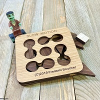 This is a very unique Packing Puzzle by Frederick Boucher. Made from laser cut wood. The goal is to fit all of the pieces completely inside the frame, including the light colored piece, without the use of force. And it is definitely harder than it looks. There is a small opening on the bottom right side of the frame. This is the only opening that will allow you to fit any of the pieces inside the frame. The holes on the face of the puzzle are simply there to help you move and maneuver the pieces. The holes also give the puzzle a really cool looking aesthetic. This puzzle is in perfect condition and includes all of the original packaging and paperwork. It was purchased directly from Frederic Boucher. It has been stored in a Ziploc bag inside an airtight container with Boveda humidity control packets.