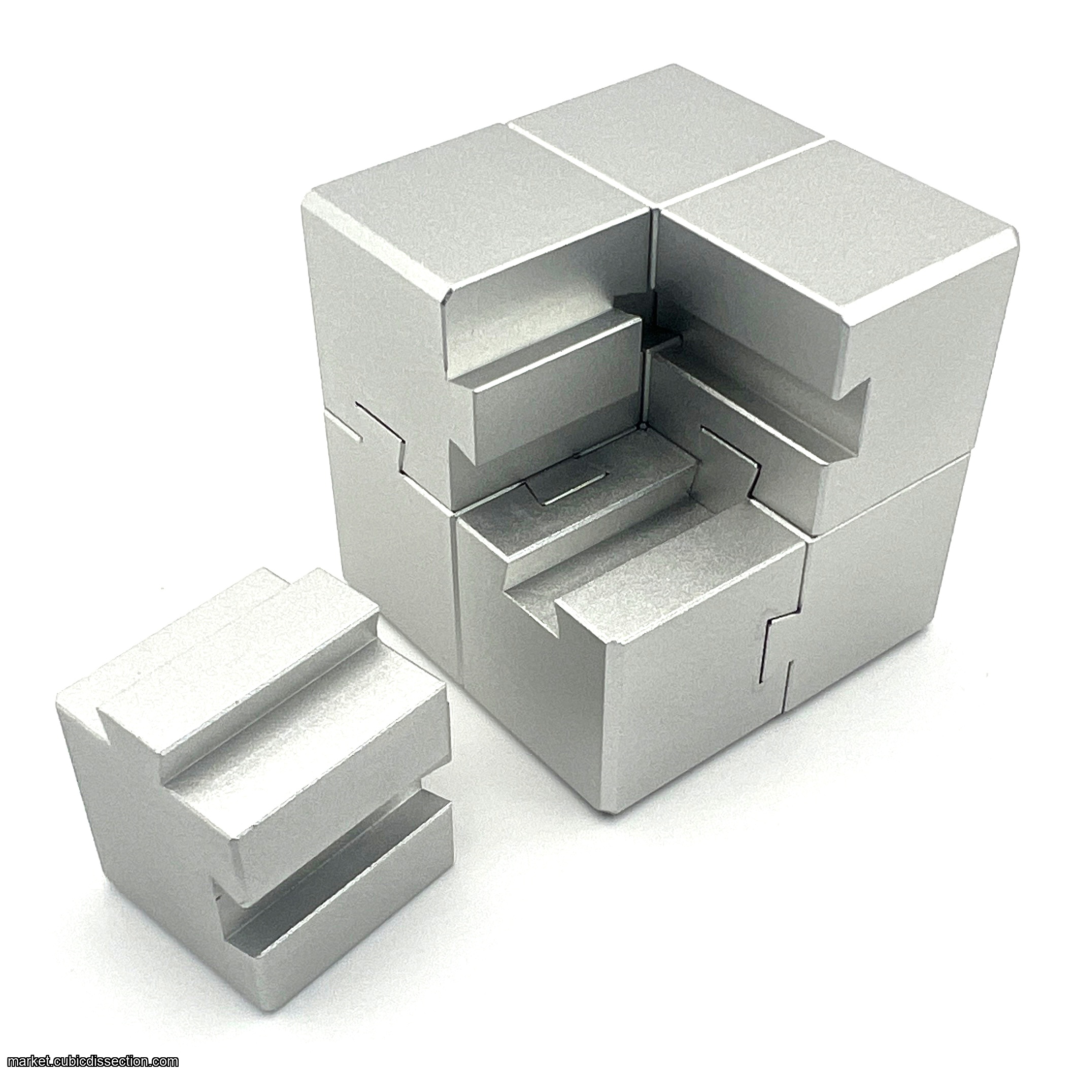 This new edition builds on that heritage and is made of precision-machined aluminum with a nice sandblasted finish. We had to go through a few iterations of prototyping and material tests before we were able to find the sweet spot for tolerance and fit, resulting in pieces that slide so smoothly that you'll be hesitant to put this puzzle down and that will look great sitting on your desk, table, or shelf once you do.