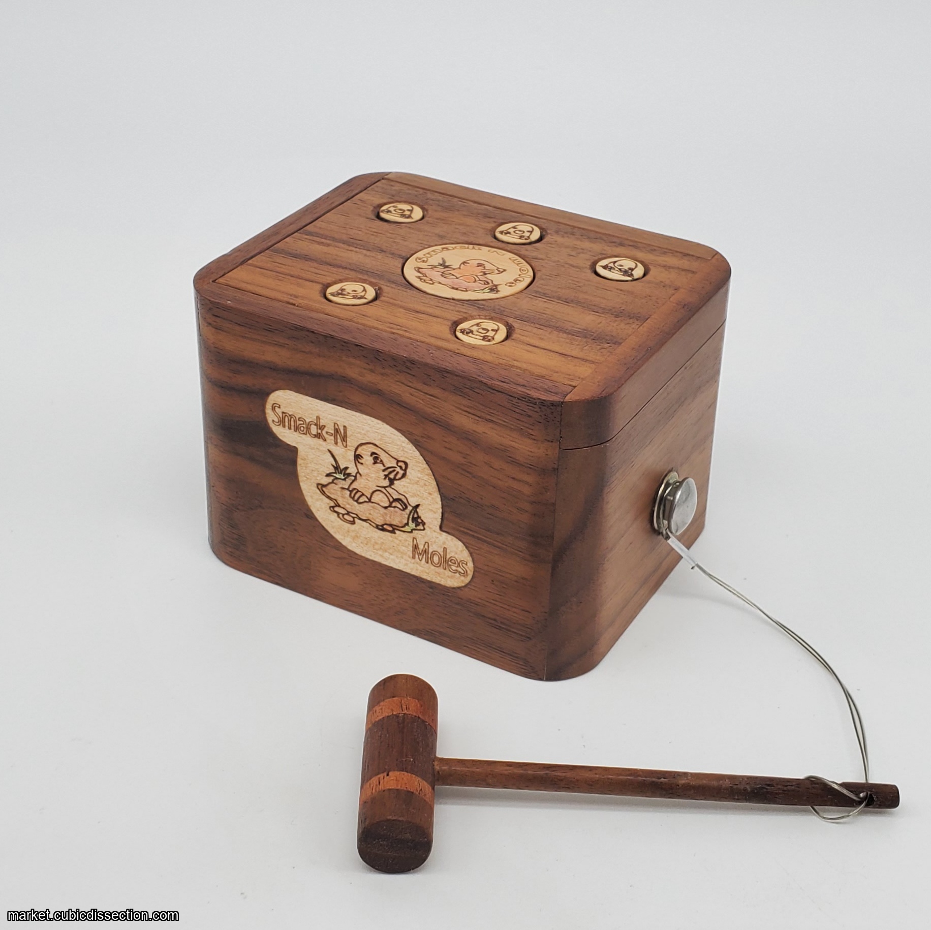 description: made for IPP41, it's a limited-edition, arcade-themed puzzle box inspired by the classic Whac-A-Mole game. It features interactive mechanical components and a clever sequence of moves to reveal hidden compartments.