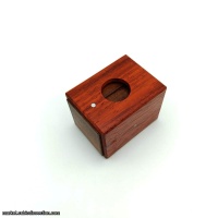 Small Box One - "Window Box" is a devious drawer tucked into a box with lots going on for its size. The large hole in the box serves as a window into the mechanism...careful observation and experimenting is necessary to reveal its secrets. I'm very happy with how this box turned out, the mechanism works flawlessly and repeatably once you know the scoop.