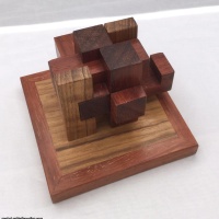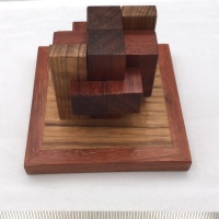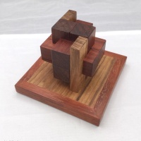 The charetersitic what makes this design special is the simple frame, which gives the puzzle and additional difficulty to solve. The coloumns are forced by hidden metal screws.