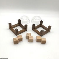 Laszlo contacted me about this very unusual packing puzzle and I was immediately intrigued. The goal, to pack three identical two-cube pairs into a sphere, seems simple. It's anything but! The sphere will only click closed if the pieces are in the exact perfect alignment, and discovering that alignment is tricky indeed. Many solutions come close but ultimately miss the mark, causing the sphere to stay partially open. Once the solution is found the sphere is tightly enclosed by the magnetic walnut cage. This puzzle is VERY unique and an interesting addition to every collection.
