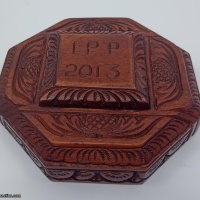 "Sri Lanka boxes were described in CFF last year*1 and Frans de Vreugd later reported on our trip there*2. This box includes the main traditional elements and was made to my specifications by Sigiri Craft Centre. The ambiguous figure is a copy of a 14th C Sri Lankan carving.