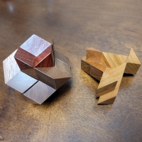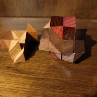 From nedeljkowoodworks.com:STC 39 Rosebud is a co-ordinated motion polyhedral puzzle which is difficult to make and difficult but not impossible to assemble without the aid of a jig. When perfectly aligned the six pieces slide together and open and close like the petals of Rosebud. The Rosebud Assembly Jig is sold separately and is highly recommended.