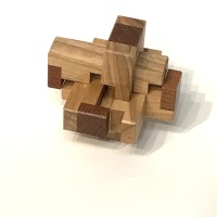 Stepping Burr is a very tricky level 10 interlocking burr puzzle. The unconventional nature of the six pieces results in some very unusual movements. Crafted from figured Ash and Leopardwood, this puzzle looks gorgeous when solved and is a fine addition to any interlocking puzzle collection.