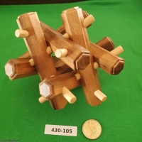 8 hexagonal sticks, 8 dowels, 12 pieces in total. A very difficult and unusual puzzle, crafted to excellent standards. Original information card and detailed solution included.