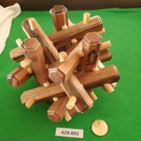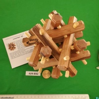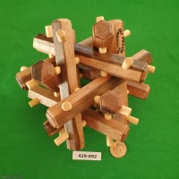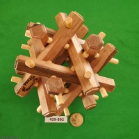 12 hexagonal sticks, 12 dowels, 18 pieces in total. A very difficult and unusual puzzle, crafted to excellent standards. Original information card and detailed solution included.