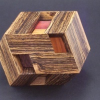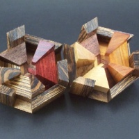 Stewart Coffin's Two Tiers puzzle ( STC #75-A) made from Bocote, Bloodwood, Tropical Walnut, Yellowheart, Chakte Viga and Koa. Puzzle is from my personal collection. This is the most difficult puzzle for me to part with, but I truly believe that other die hard Coffin collectors would want the chance to own it and will appreciate it as much as I do.