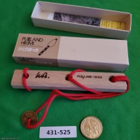 Stick A by Nob Yoshigahara consists of a wooden stick with 3 holes, a string loop and one coin.