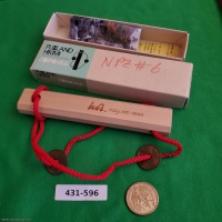 The object is to remove the loop and coins.  Side of puzzle is embossed "Nob Puzzland Hikimi".