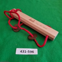 Stick B by Nob Yoshigahara consists of a wooden stick with 2 holes, a string loop and two coins.