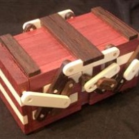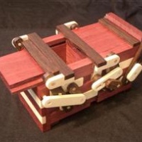 The box is 4.5” x 3” x 2.5” and is crafted from maple, purpleheart and wenge. It comes with its own full-color 4-page instruction booklet. I am not sure why this box was left over. It is in perfect working order without any flaws. These boxes were limited in edition to only 35 pieces, but for some reason this particular box was never numbered. My only guess is that I entered it in the 2006 IPP prior to numbering it, and it was returned to me after all other website puzzles sold out.