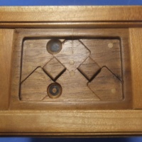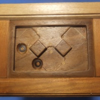 A minimum of 13 moves are required to access the box's single compartment. However, with 180 possible tile combinations for each move, this puzzle is functionally impossible to solve without deciphering the code. Once solved, the mechanism neatly resets itself when the box is closed.