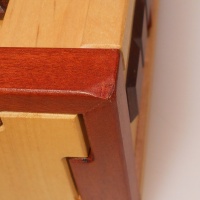 Puzzle is constructed of Bloodwood, Maple and Cocobolo woods, and measures 9” x 4” x 4” and comes with its original 6-page, color illustrated instruction booklet. These puzzles were limited to 45 finished pieces, and this is # 4 out of the limited edition set.