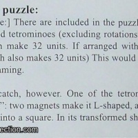 There is a catch, however. One of the tetrominoes is a “transformer”: two magnets make it L-shaped, and it can be transformed into a square. In its transformed shape they all fit to the frame.