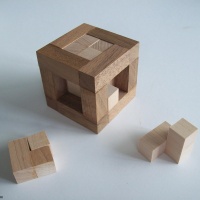 3) Start with the empty frame; place the eight tetracubes into the frame, only working through the top hole.