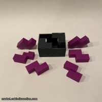 Sukiyaki by Frederic Boucher. 3d printed by Tom Burns. Pack the pieces into the box. Solved once.