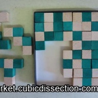 Thisis a two sided twelve piece checkerboard puzzle, using pentomino and hexomino pieces.
