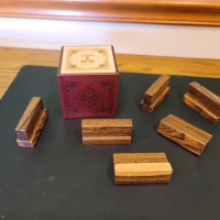 When I saw the name for this, my mind immediately went to creating an old fashioned "Tea Box". I thought the simple box with its relatively small obstructions and rather plain "T'" shaped pieces provide quite the challenge, but I felt it could use something to make it look a little fancier. The laser work on the box added a good bit of time, but I thought the end product was work the time. This was Haym's exchange puzzle at IPP a few years ago.