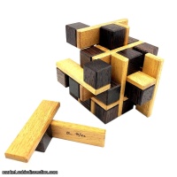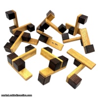 Tabula Cube is a very interesting puzzle. The 3x3 cube format is augmented with eighteen smaller planks which connect with the cubes to make nine different shapes. The level 1.7.2 solution is tricky to disassemble and very challenging to assemble. Tabula is a lot of work to make, with 45 component pieces and very precise gluing requirements. We may not sell it out immediately but that's ok...it's a unique puzzle and I'm looking forward to having a copy in my own collection.