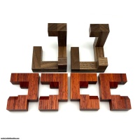 This batch of Taco Cube was constructed from Walnut and Padauk. Approximately 77 copies will be available. Taco Cube ships in an unsolved configuration.