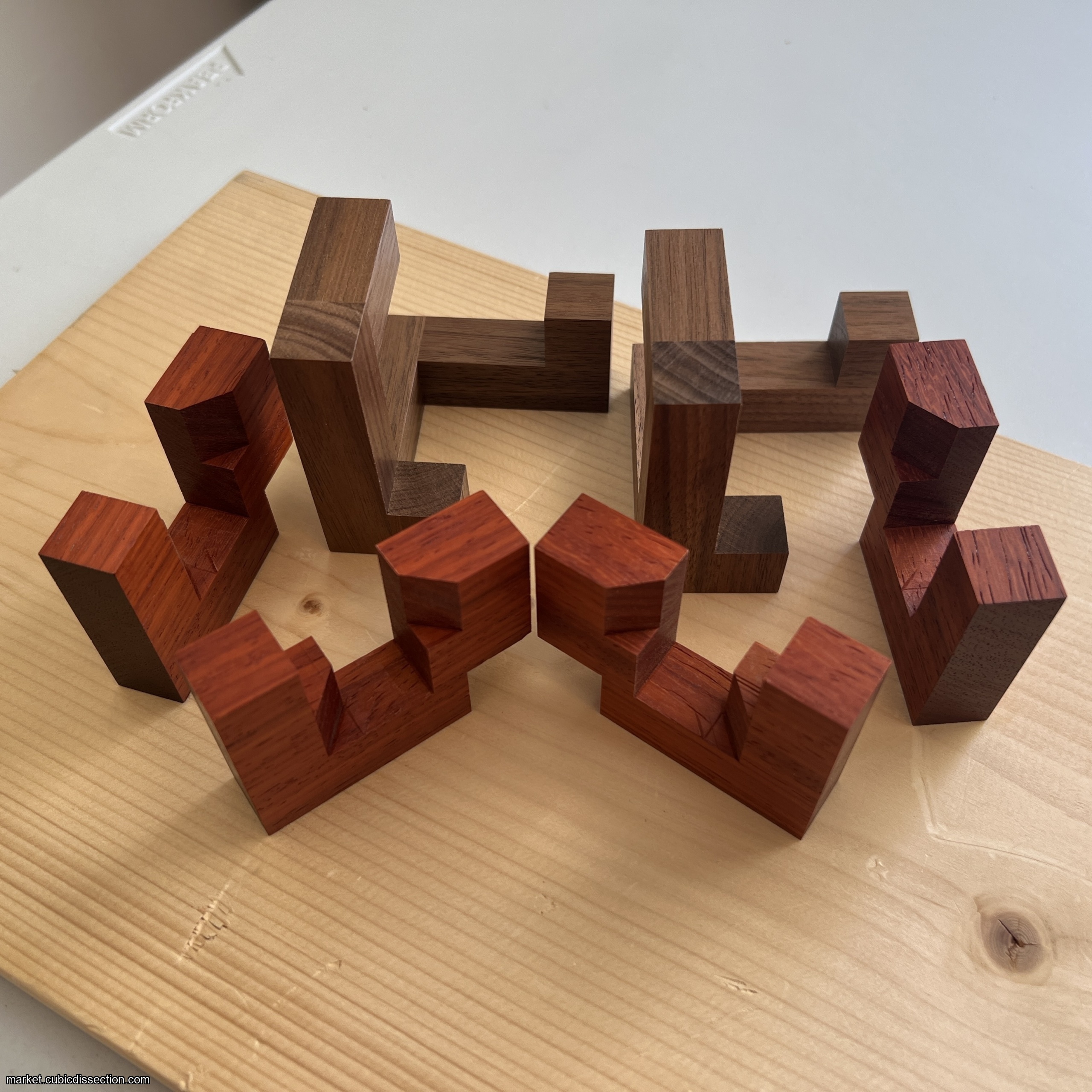 We were surprised when JinHoo contacted us with his latest design, Taco Cube. JinHoo is a very successful puzzle designer with multiple creations manufactured by the esteemed Hanayama company. He honored us by choosing Cubicdissection to craft his latest puzzle from wood!